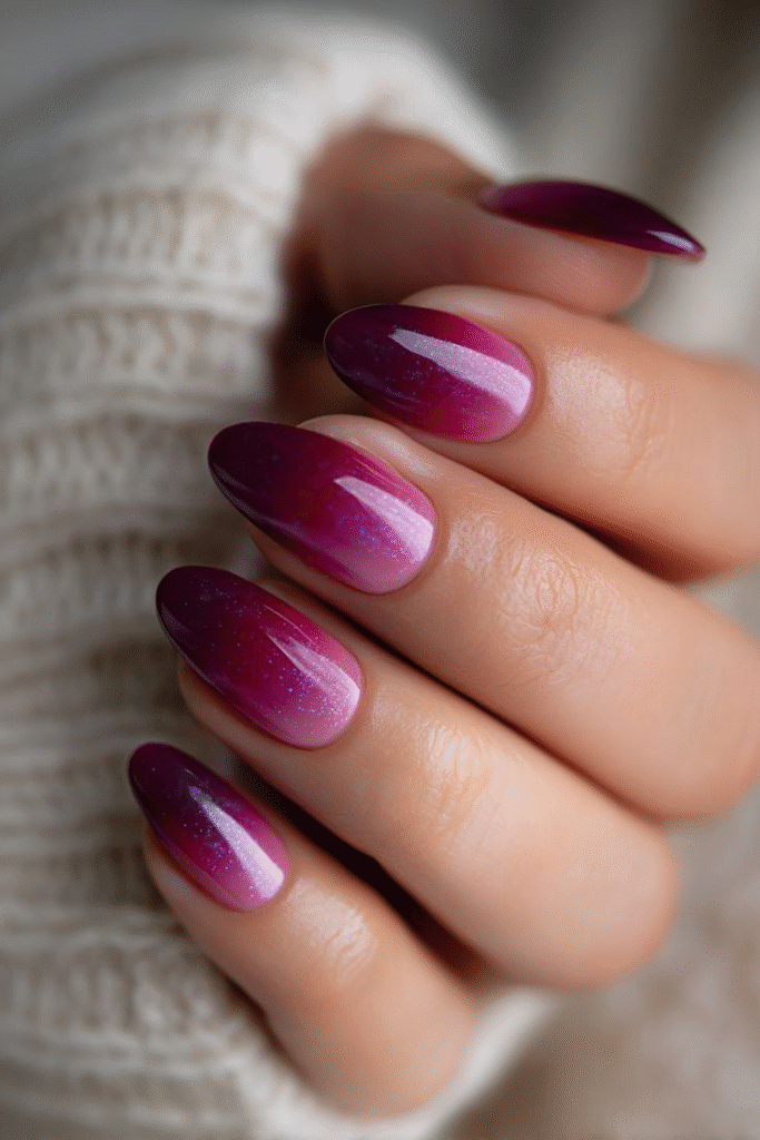Styling Tip: A purple gradient manicure pairs beautifully with a deep purple dress for a chic, monochromatic look.