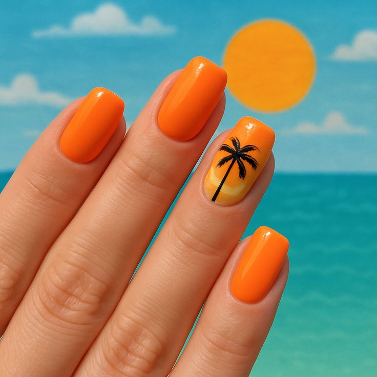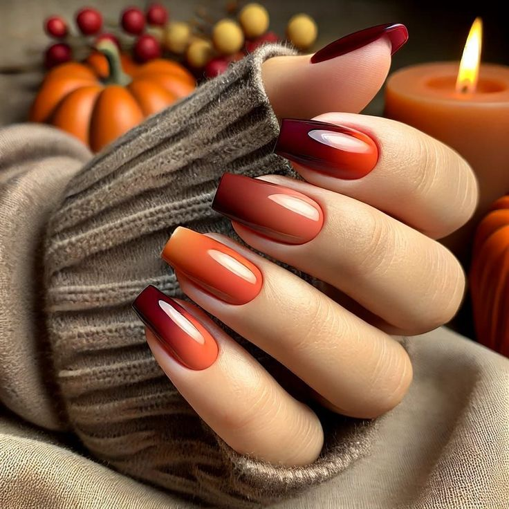 The warm, vibrant shades reminiscent of a setting sun—fiery oranges, deep reds, soft purples, and enchanting pinks—come together to create a stunning manicure that’s sure to turn heads.