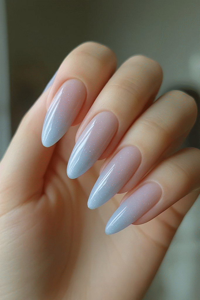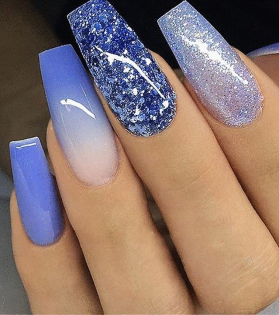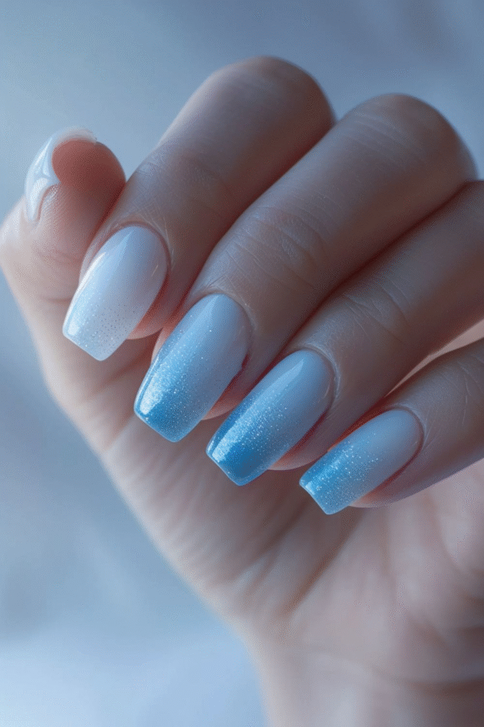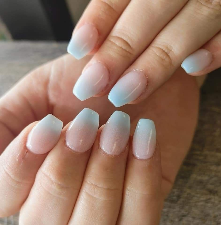 - Begin with a pale blue base and blend in a deeper cobalt at the tips for a flawless gradient.