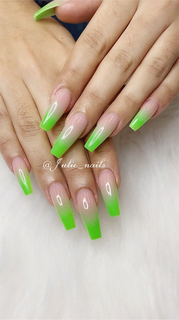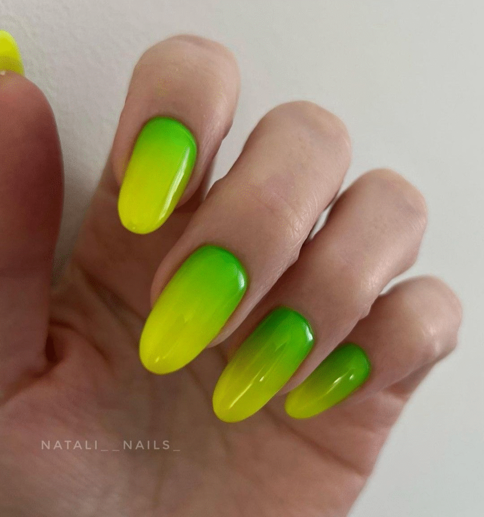 Vibrant colors have the power to spark endless energy and excitement. By pairing complementary lime shades and blending them seamlessly, you can create nail art that’s both bold and irresistibly sweet. It’s the kind of striking design that even style icons like Katy Perry or Cardi B would find impossible to resist.