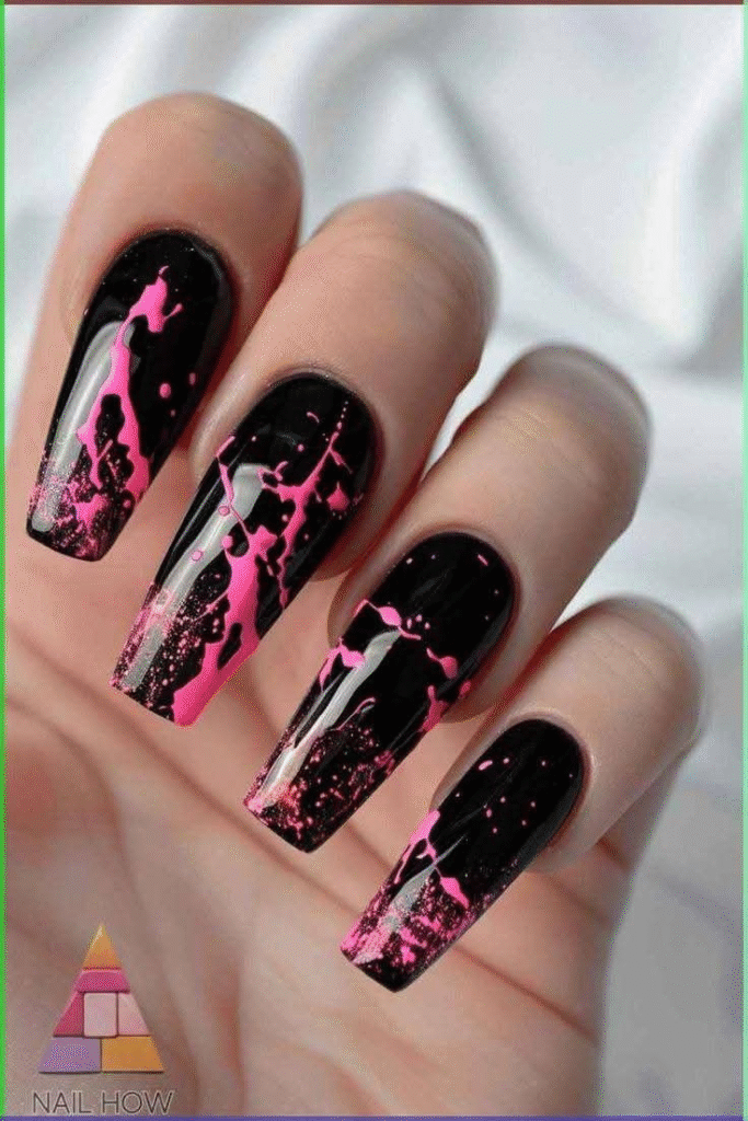 Start with a bold black base that gradually fades into soft pink for a fresh take on this striking color combo. To elevate the look, add half-moon inspired accents by coating a few nails in light pink first—try shades from OPI—and then blending them into the gradient for a stylish finish.
