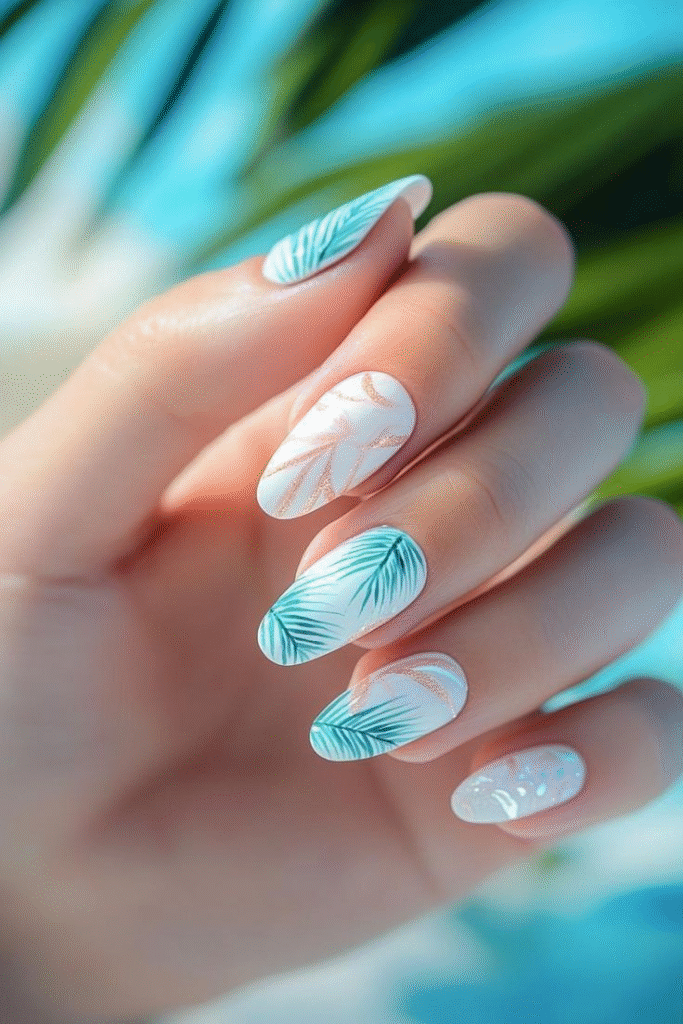 If you’re drawn to ocean-inspired vibes, turquoise ombre nails are the perfect choice. This refreshing shade instantly evokes the feel of a summer getaway and pairs beautifully with crisp white.
