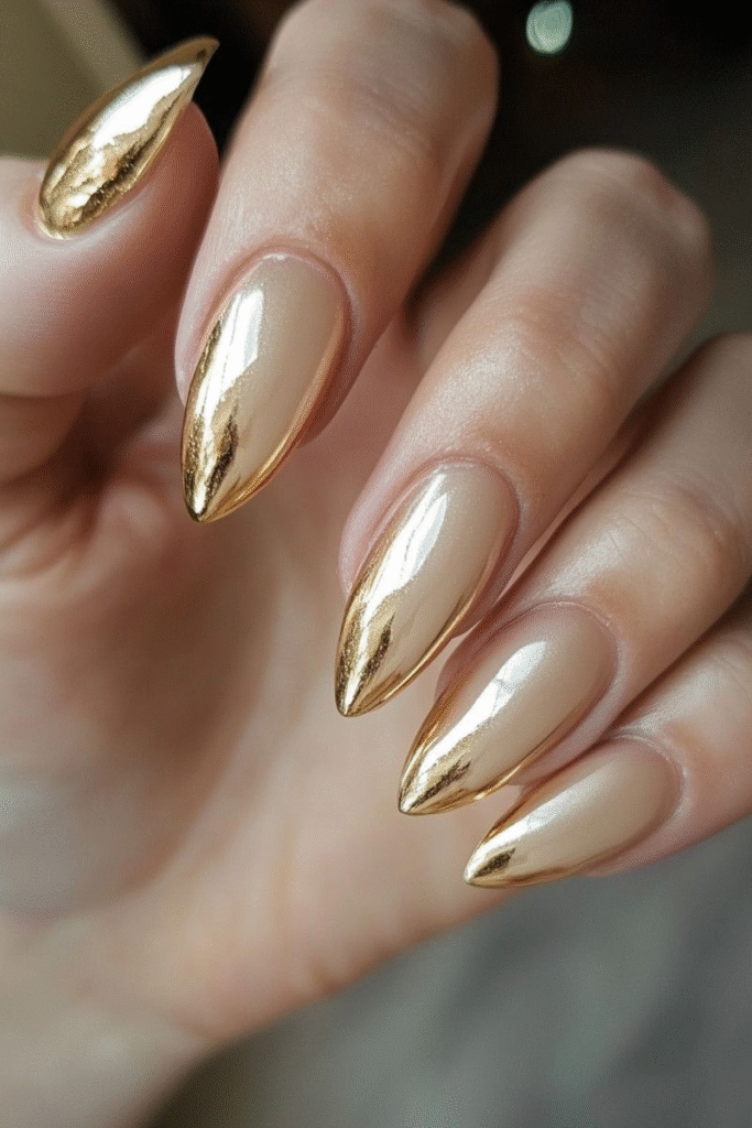 The blend of golden tones with an ombre effect feels like a perfect match. If you’re aiming for a show-stopping look worthy of a true style icon, this nail design is the ultimate choice.