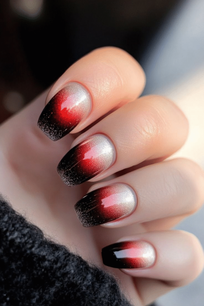 Red ombre nails exude elegance and undeniable allure. The striking combination of red and black creates a bold, captivating look. Whether you choose a matte or glossy finish, the result is sure to impress and exceed all expectations.